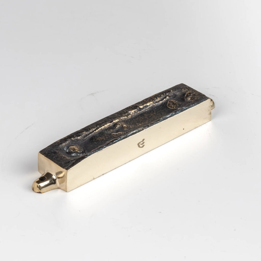 Cast from an impression of pre-WWII remnants of a Mezuzah found in Bialystok at Ciepla 8, which was part of the Ghetto . From a Judiaca project in Poland called "Mezuzah From This Home". Impressions are made of remnants of Mezuzot found throughout Poland and from these are cast a new Mezuzah in bronze. Each one recalls the memory of some of the 3.5 million Jews that lived in Poland before WWII, and carries these memories by making these Mezuzahs live again in their original use. Each is engraved with the address where the casting was taken.